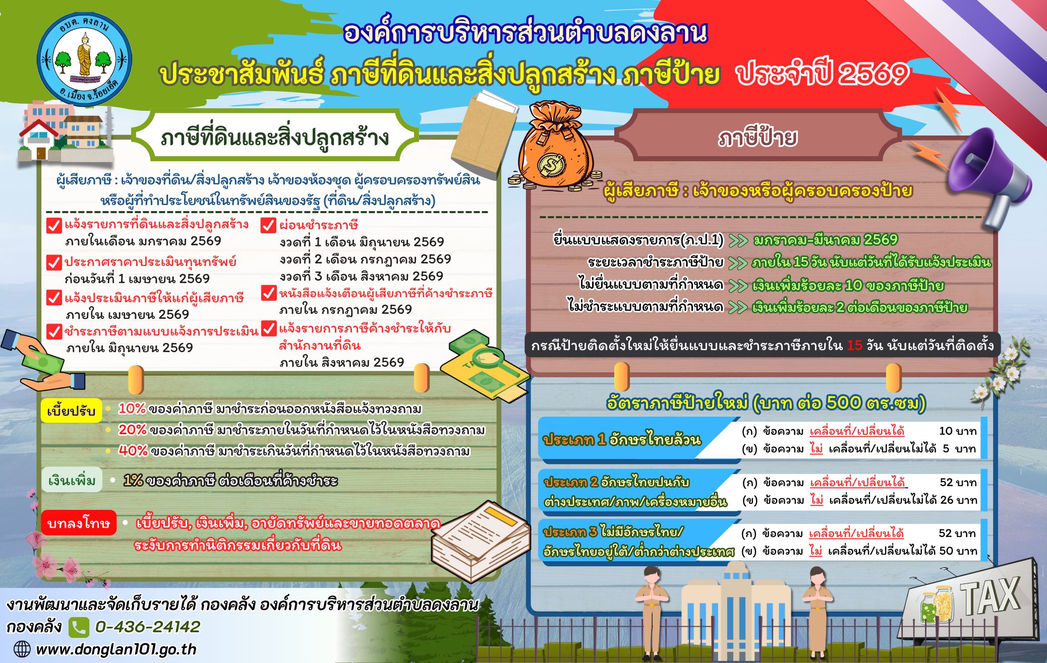ประชาสัมพันธ์ ภาษีที่ดินและสิ่งปลูกสร้าง ภาษีป้าย ประจำปี 2569 |